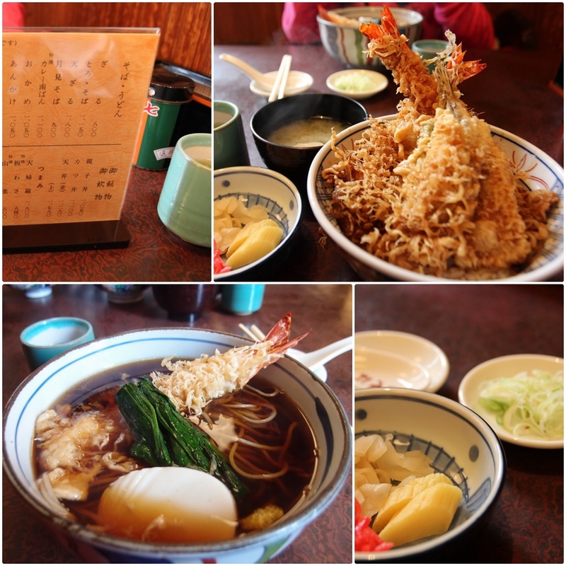 來到箱根湯本,歡迎我們的居然是下個不停的雨。也正值中午吃飯時間了,在街上晃了一圈,感覺賣的東西都差不多,最後決定吃這家在車站附近的「山そば天丼」,順便彌補上次在雷門三定沒吃到天婦羅丼的遺憾。