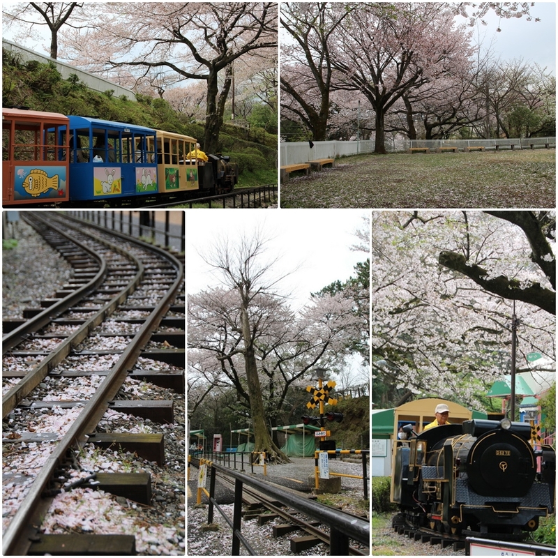 ↑ 奔馳在櫻花樹下的豆汽車(遊園小火車),搭乘小火車穿梭在這樣的美景中也是另種享受