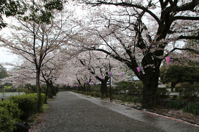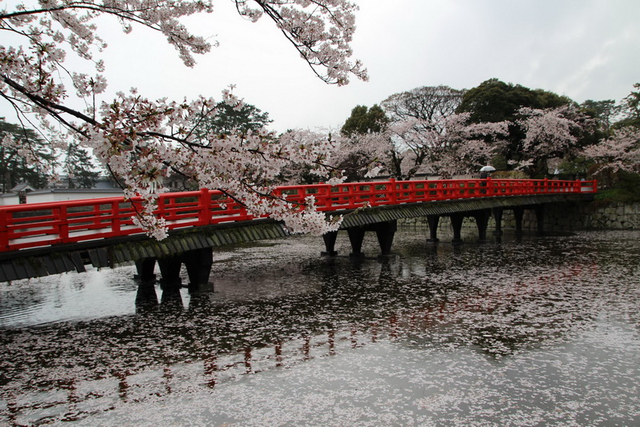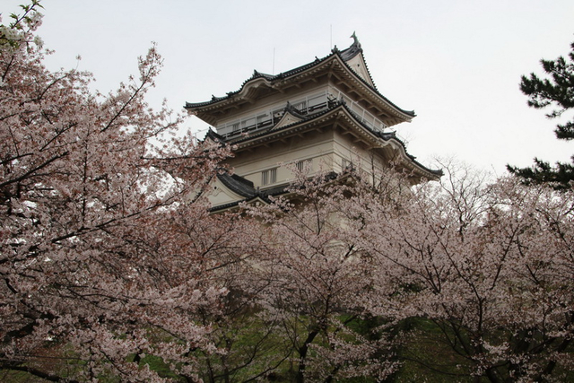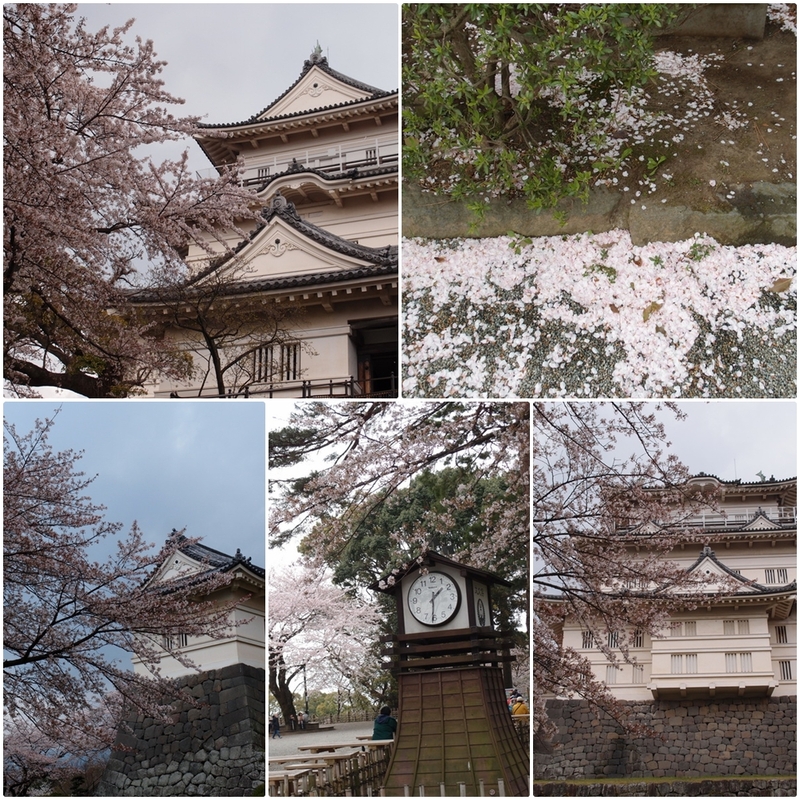 可惜的是這裡的櫻花開得比東京市區早,已經過了盛開的時間,已呈現「葉櫻」的狀態了,否則我覺得這裡是個很棒的賞櫻地點,除了有橫貫古今的那些櫻花樹之外,還有遺址重建的天守閣,憑添思古之幽情。