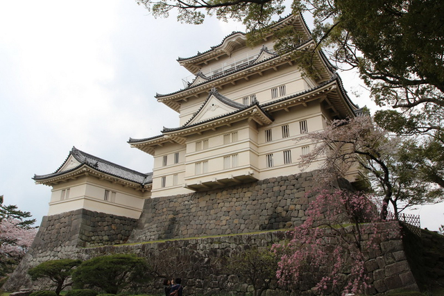 吃飽之後便開始利用周遊卷,前往小田原城。小田原城是一座位於神奈川縣小田原市的一座平城城堡,日本國家指定遺跡之一,離箱根湯本很近。這個地方在早期一度是關東地方最難攻下的不落之城,不過這些都不是我們造訪它的原因,最主要是因為小田原城是「日本賞櫻名所百選」之一,也是我們此行造訪的第五個賞櫻名所百選(蝦瞇?怎麼又來一個百選?)。換句話說,如果小田原城裡面沒有櫻花,就算它是世界上最難攻破的城,我們也不會去吧?冏rz