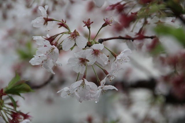 ↑↓ 下雨了,被雨淋濕的櫻花瓣顯得嬌豔欲滴