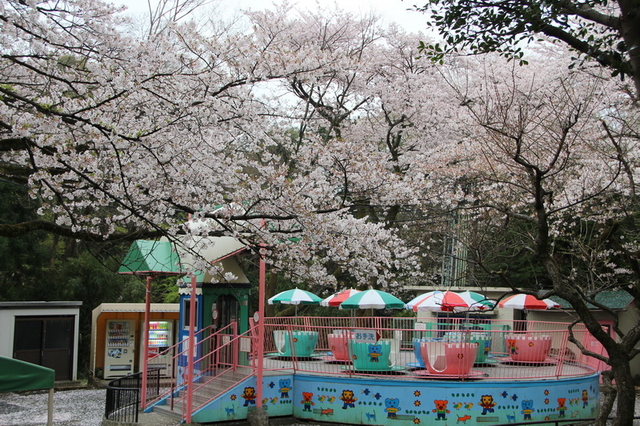 ↑ 櫻花樹下玩旋轉咖啡杯,這應該是最美的一座遊樂園