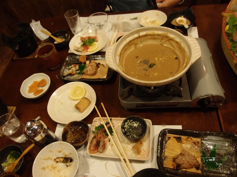 平日時段住宿、用餐的人不多,可以安靜地享受一頓豐盛的日式饗宴。令人眼花撩亂的刺身盤(左上)是莫名其妙另外加點的,有整條魚切的刺身、干貝跟甜蝦等,很新鮮,不過份量好多吃到後來感覺要變成一條水裡游的魚了