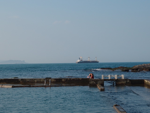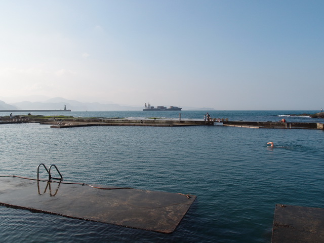 有一個海邊泳池的區域,冷得要命還是有幾個人在裡頭游泳
