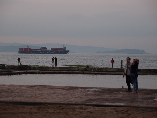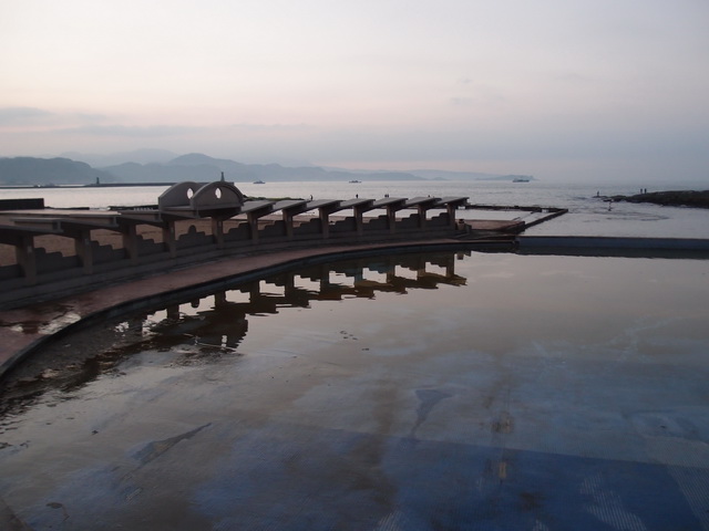 冬天的海水兒童戲水池沒有開放,裡邊的有髒髒的海藻