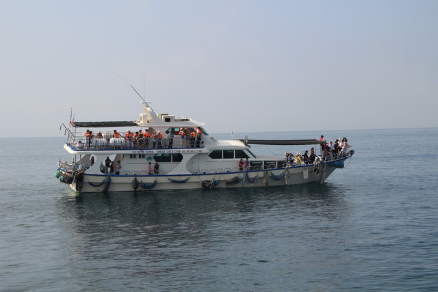 因此等遊客下船之後都必須駛離碼頭到附近等。