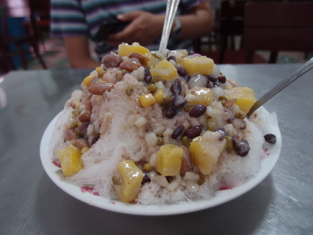 有綿密的紅豆、花豆、綠豆、蜜煮的鳳梨、地瓜、QQ和麥角、玉米,