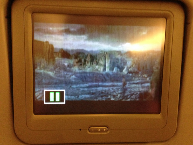 ↑ 機上有個人專用的影音娛樂設備,可惜的是螢幕解析度實在太低,看慣HD畫質的我看得實在很痛苦,看了兩部電影之後就無心再戀棧,拿出iPAD玩遊戲卡實在