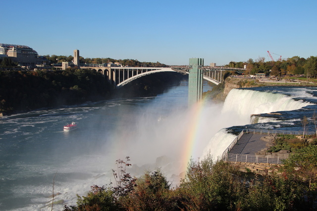 ↑ 從公羊島上可以側邊看到美國瀑布,只要有太陽,彩虹顯而易見的。後面那座即連結美加邊境的彩虹橋
