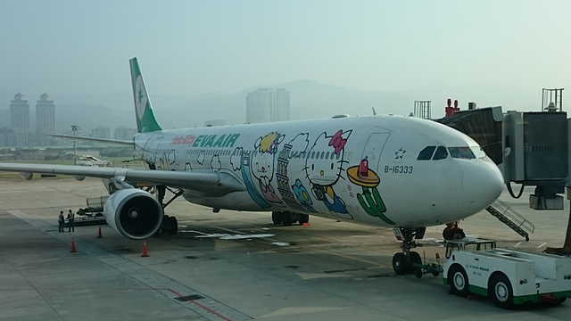 ↑ 這次來回都搭HELLO KITTY彩繪機,但這裡沒有像桃園機場在登機口旁弄個HELLO KITTY專賣店,登機前先撈你一筆