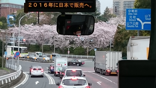 ↑↓ 沒什麼乘客的機場巴士,沿途看道路邊盛開的櫻花