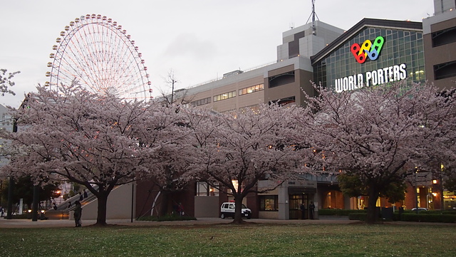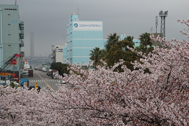 ↑ 不管港區有多繁忙,每到了這個時節春,一旁的櫻花還是逕自盛開