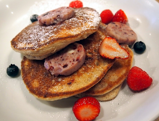 ↑ 橫濱店鋪限定的草莓藍莓口味鬆餅 ¥1350,鬆餅加上特別製成的莓果奶油,一起吃變成酸酸甜甜的味道,不喜歡酸的人可能會有中雷的感覺
