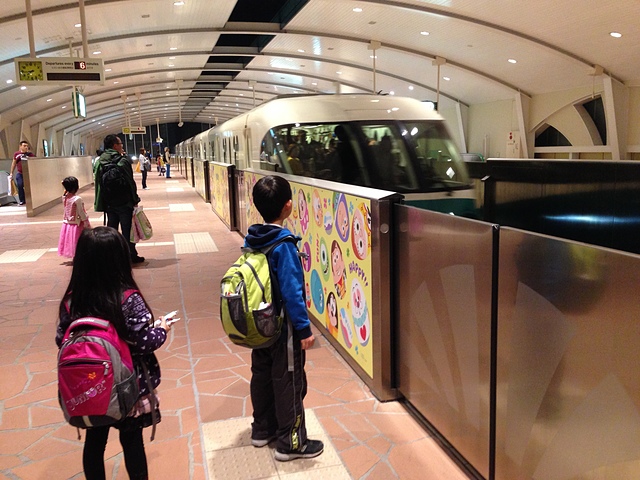 必須先從飯店搭免費的接駁巴士到單軌電車站,