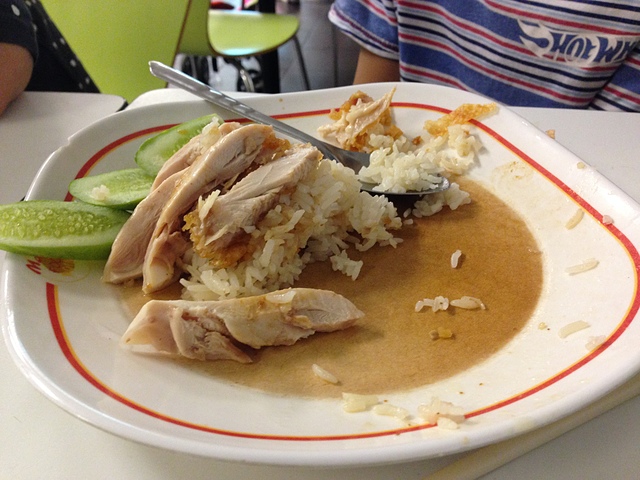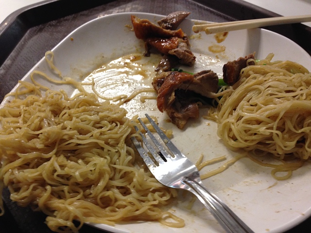 ↑↓ 被吃一半之海南雞飯(100B)與燒鴨麵(90B)