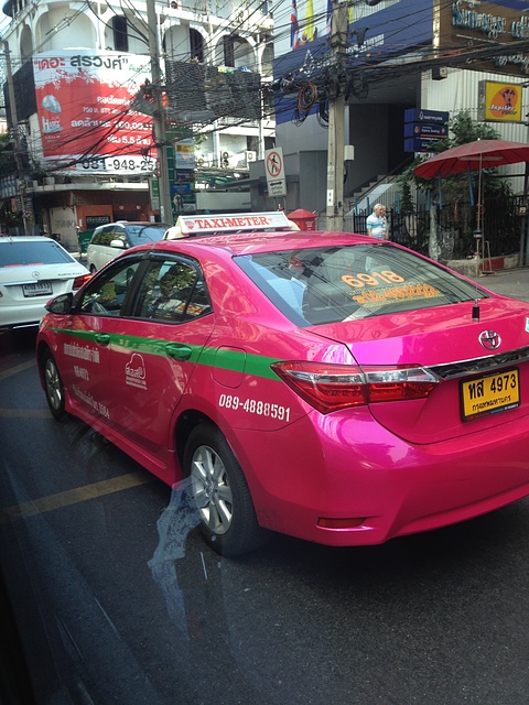 ↑ 前往機場了,沿路看泰國的五顏六色計程車滿街跑,十分歡樂