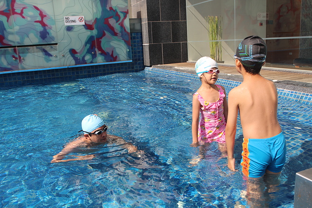 ↑↓ 住這種飯店一定要來游泳的啊,游泳池的水是鹹的