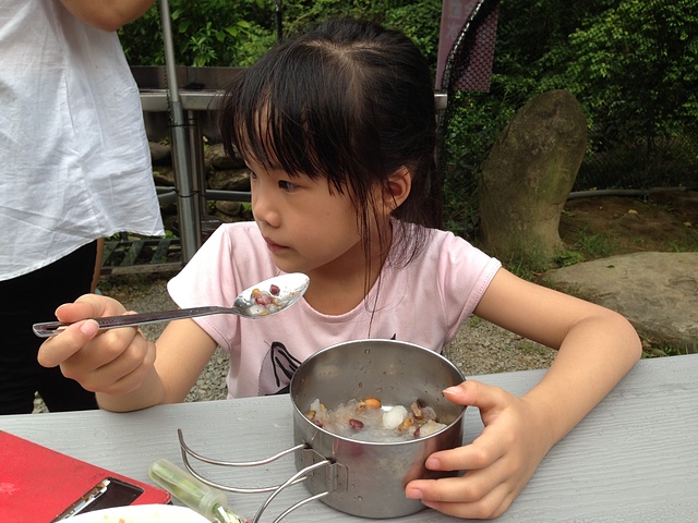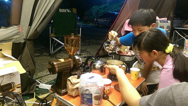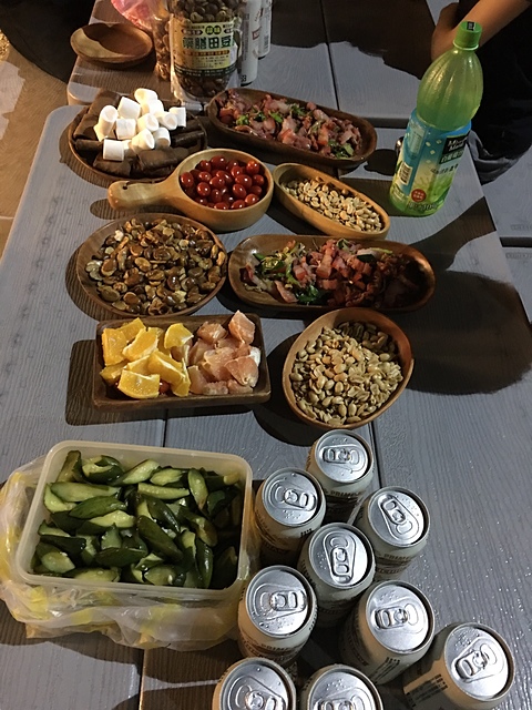 ↑↓ 搭完帳後,大夥圍著桌子,吃吃小菜,「小酌」話家常