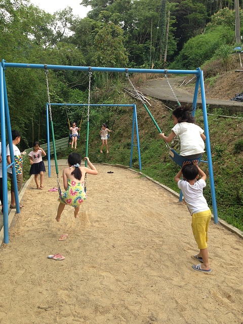 ↑↓ 營區裡給小朋友玩的娛樂設施很多,跑出去整天玩到不人影