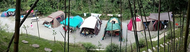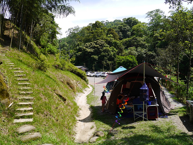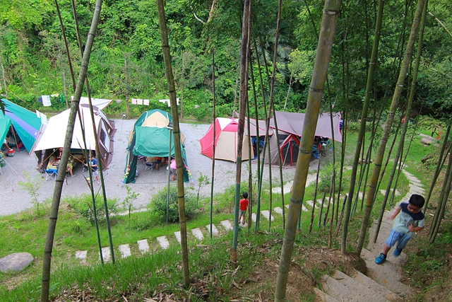 ↑↓ 溪水區位於營地的最下方,可搭七帳,鄰近小溪,上方有一排竹林遮蔽,與其他區有些許隔離不會受影響,算是包區的好選擇
