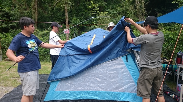 ↑ 幫首露的湯圓拔拔搭帳,加起來超過百露的幾個人一整個被這頂帳打敗,搭了半天還是不確定是否正確