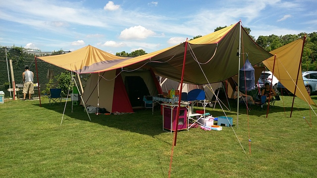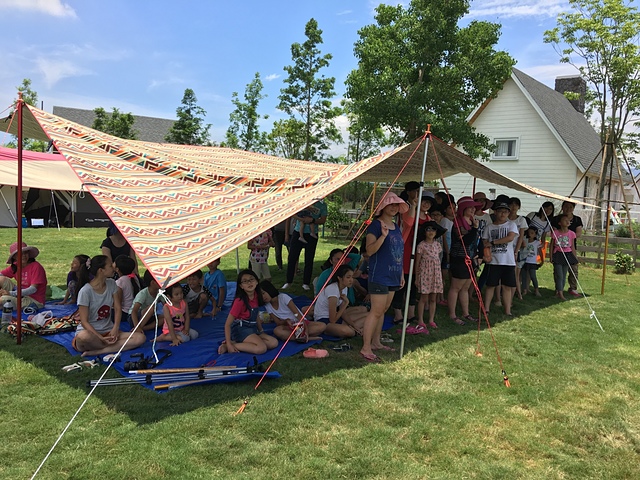 ↑ 第一次搭的5*8方形天幕,搭得鬆鬆垮垮的醜爆了!不過夏天有大天幕真的是有如身在天堂