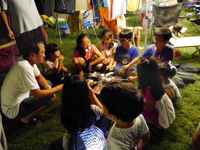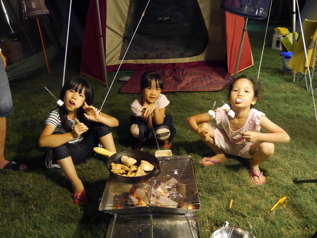 ↑ ↓ 焚火台烤棉花糖,小鬼們還蠻買單的。下次要買貝禮詩奶酒沾著烤,連大人都會圍過來