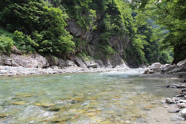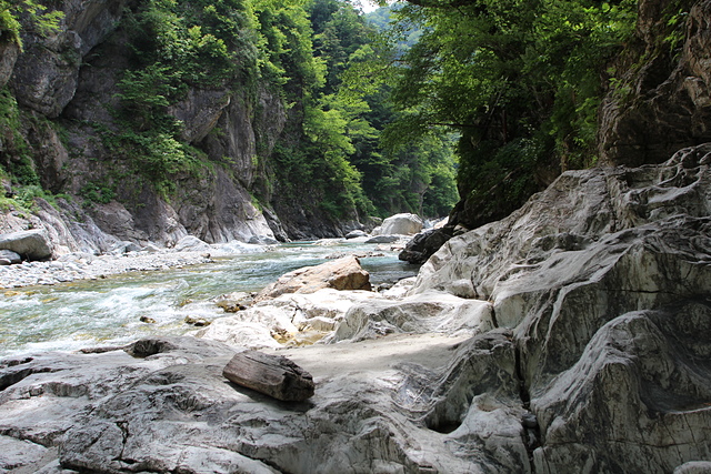 黑部峽谷是富山縣黑部市、黑部川中游~上游的V字谷,