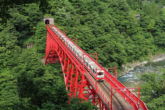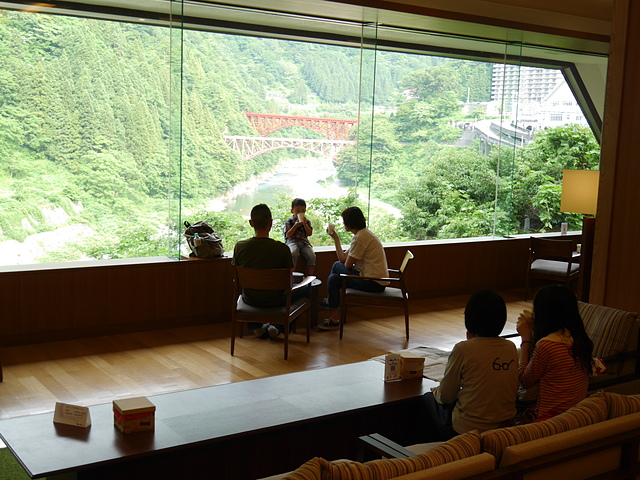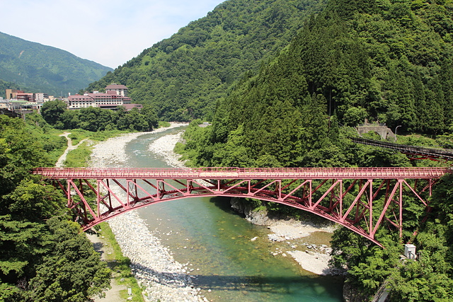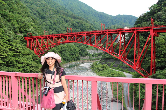 ↑ 山彥橋,後面就是我們住的宇奈月杉乃井酒店(其實我們也正在另一座紅色拱橋上,這一座是給人走的)