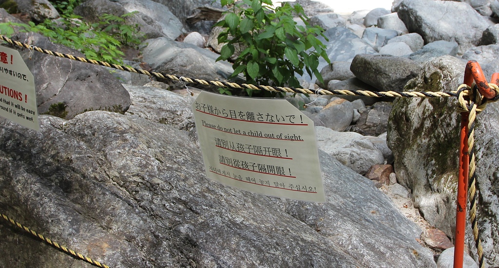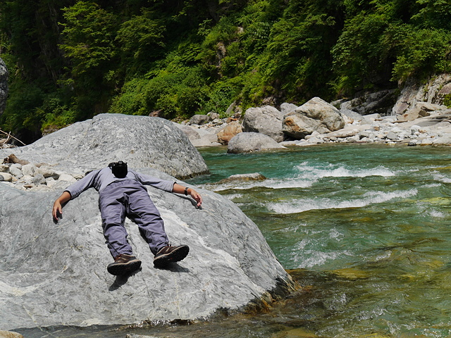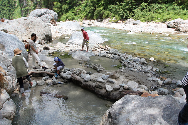 ↑ 用石頭圍起來的裡面就是溫泉水,不斷地從岩縫裡源源不絕地冒出來。下午四點後這裡會清場,只提供給住宿的客人使用,大概可以脫個精光洗野溪溫泉