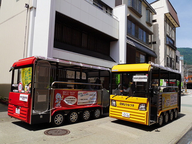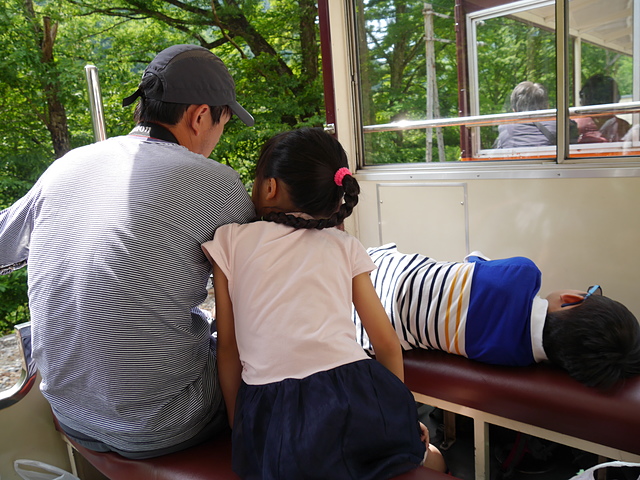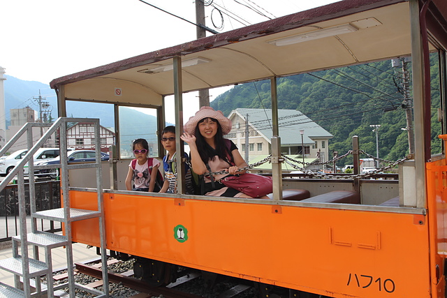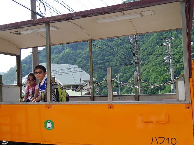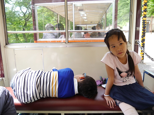 ↑↓ 我們去程搭乘的小火車,他有三種樣式,這種有窗戶的逍遙客車一人要加價530日圓,但我一點都不想加價……