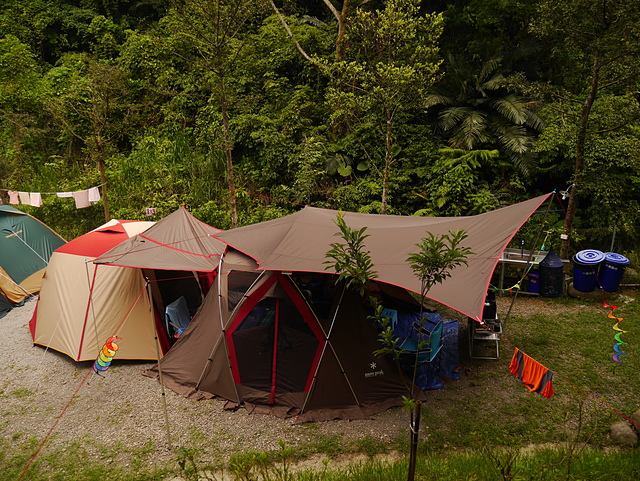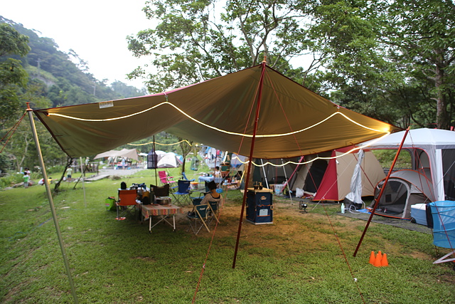 ↑第十七露(彩雲露螢谷露營區),夏天到了,加上有銀膠的改良型蝶型天幕防曬
