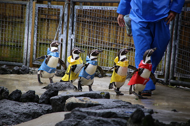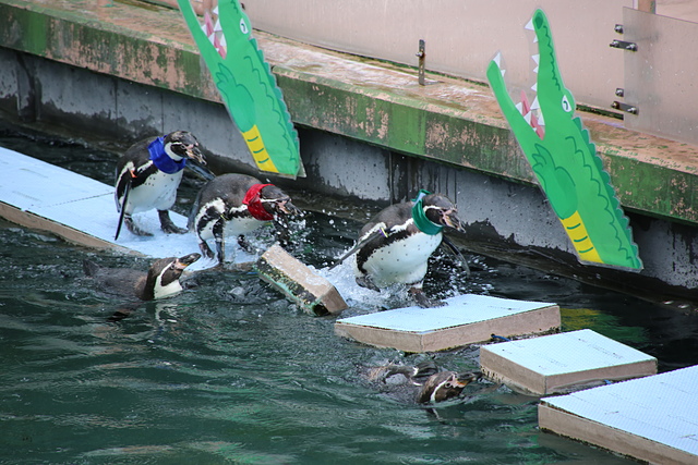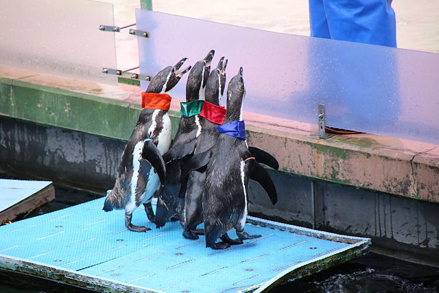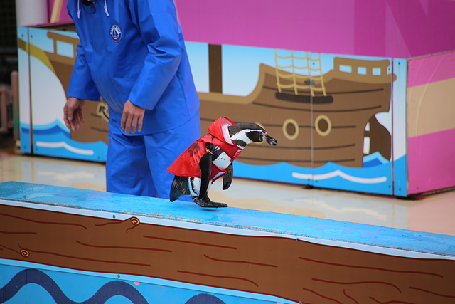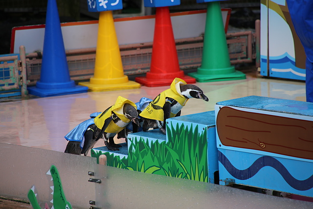 ↑↓ 企鵝島上的企鵝表演,有猜數字、爬樓梯、溜滑梯、賽跑等活動,搖頭晃腦的企鵝本身就是一種喜感