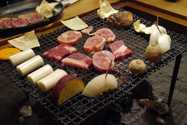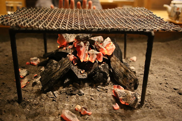 ↑ 這家餐廳是要在桌上用木炭自己烤
