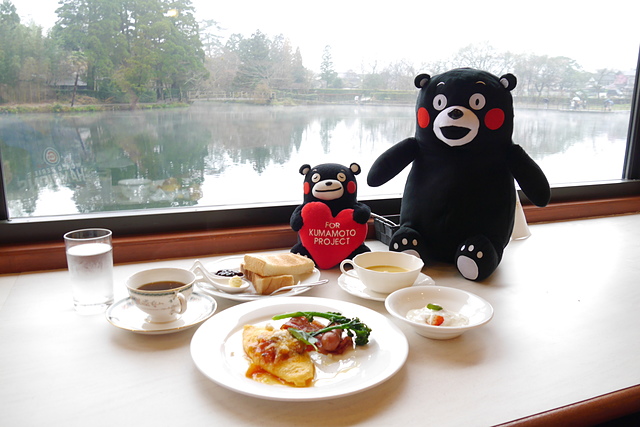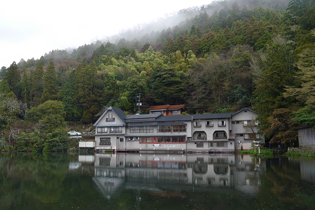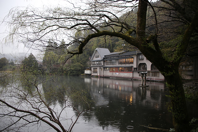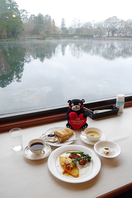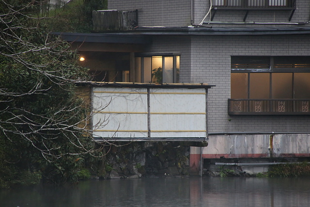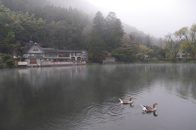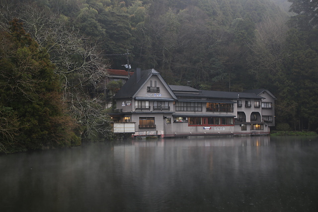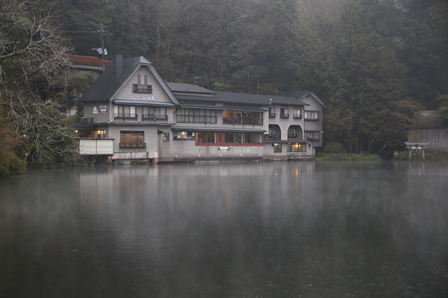 ↑ 豊の国的戶外溫泉池,一大早上才在那泡完溫泉,在金麟湖上泡溫泉的感覺還不賴,建議老闆應該可以裝個魔術玻璃,邊泡溫泉可邊欣賞湖景