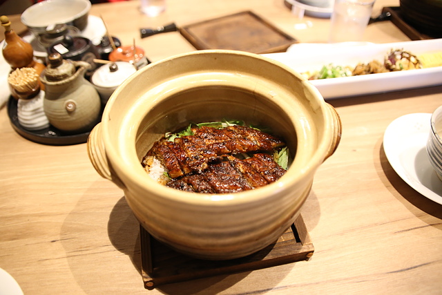 ↑ 碳燒鰻魚蓋飯,鰻魚無刺經過炭火燒烤,有一種特殊的炭香味,下面現煮的米飯再搭上醬汁,很可以