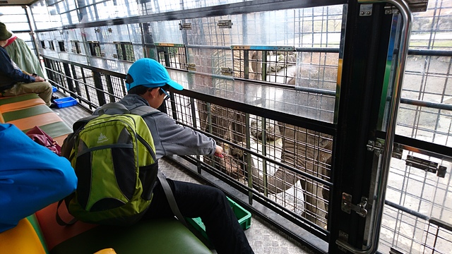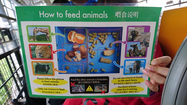 ↑↓ 上車前會發一個餵食的盆子,兩個人一份,還有張說明書跟講哪些動物吃哪種食物,不要把肉拿給大象吃