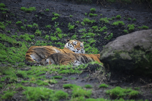 ↑ 在爛泥裡滾到髒兮兮的老虎
