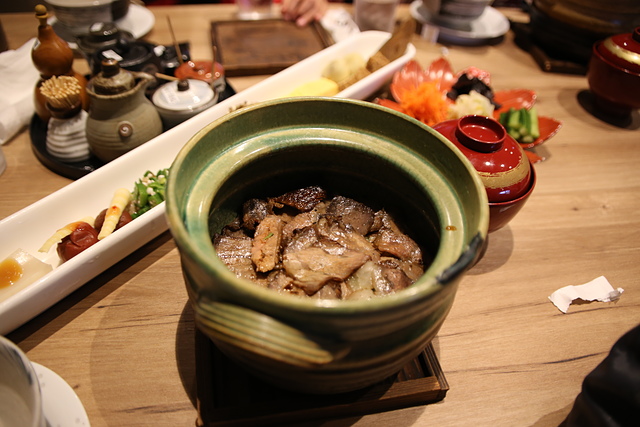 ↑ 碳燒豐厚牛,好吃喔,根本沒空用什麼第二吃,第一吃就已經快要沒了,最後勉強加上一些茶湯試試茶泡飯的味道