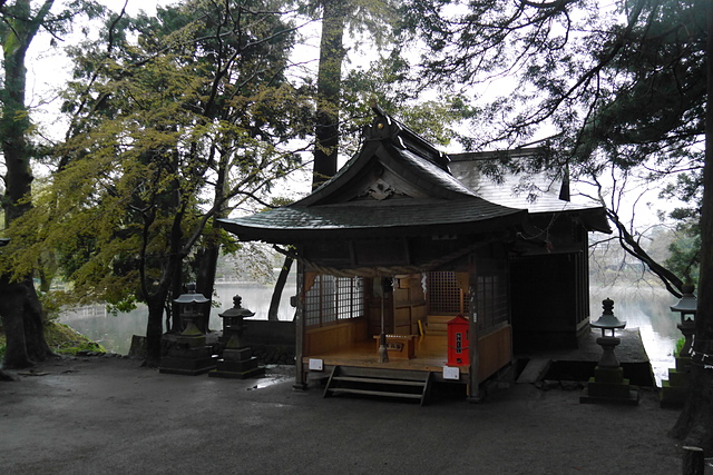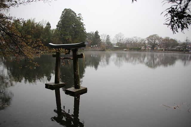 ↑↓ 金麟湖旁的天祖神社,泉水就是從這裡湧出,鳥居倒影也是一美景