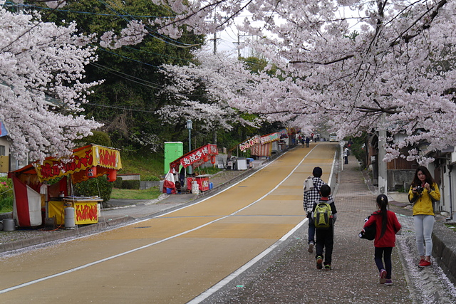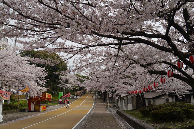 ↑↓ 光雲神社階梯下來的馬路,平常的時候可以開車由此進入公園,櫻花季時則會管制無法進入