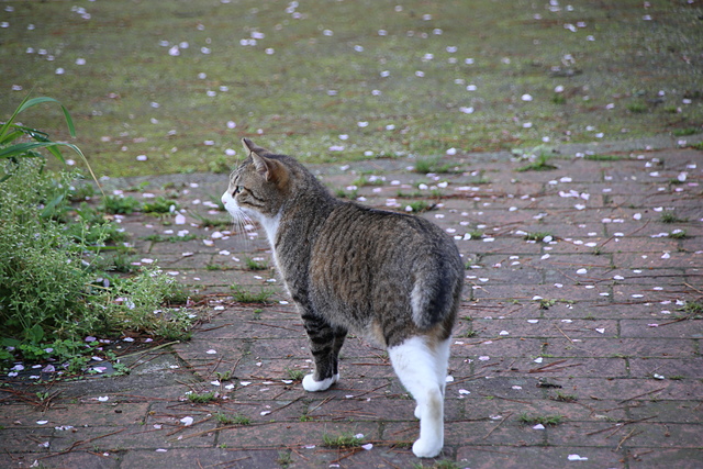 ↑ 櫻花繽紛下連野貓也變得格外優雅