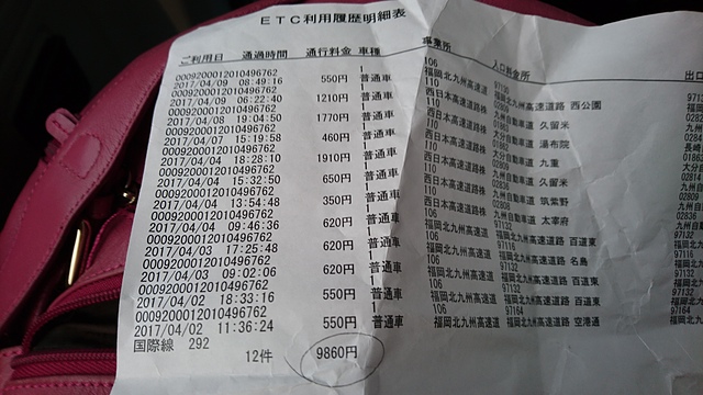 ↑ ECT的過路費明細,快要一萬日圓,日本的有料通行跟台灣比起來真的蠻貴的