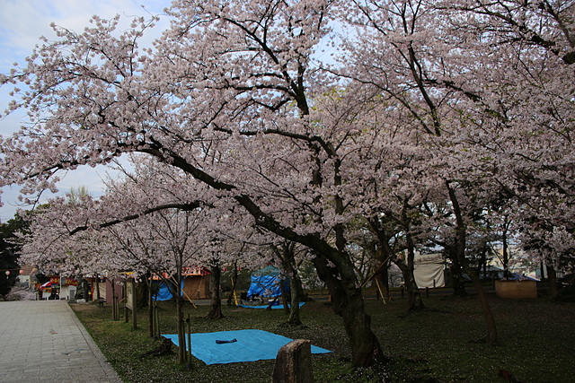 ↑ 有些櫻花樹下的地方已經被人用帆布佔位了