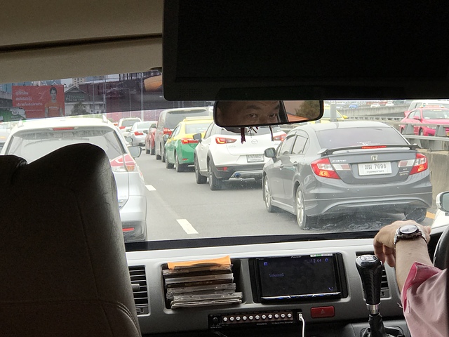 ↑ 離開蘇凡納布機場,要去廊曼機場接另一團旅伴,然後就塞在高速公路上了@@(嗯哼,為何不買同一班飛機?)