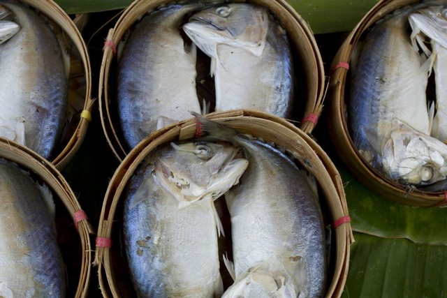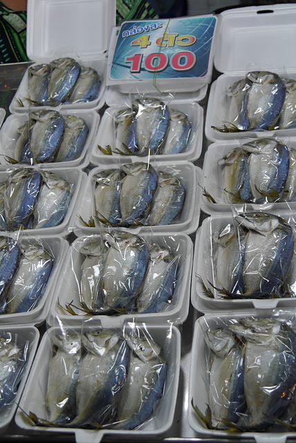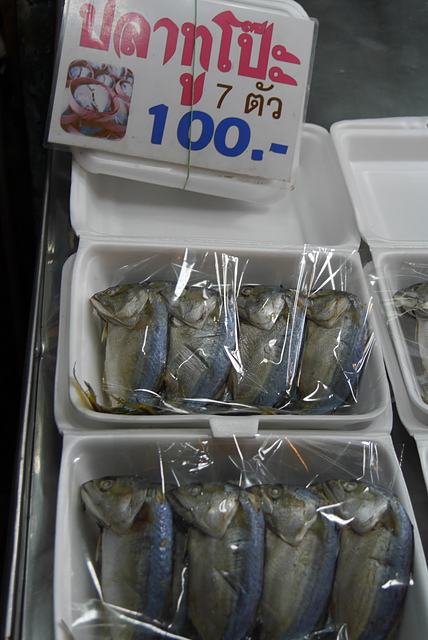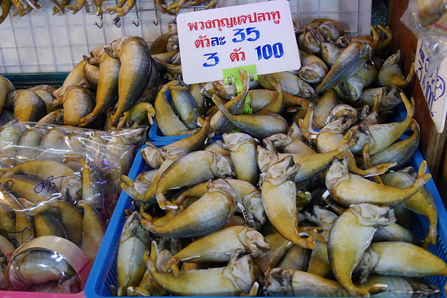 ↑ 歪頭魚是短體鯖魚的一種,身體較為短小,是泰國人最常吃的平價國民魚。之所以頭歪歪的,其實並非生來如此,是為了能夠放進販售用的圓竹簍,把魚頭折彎彎的(也有一說這樣魚會比較保鮮)