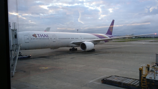 ↑ ↓ 不過我們搭的這班泰航卻沒有客滿,快到登機時間了登機室還是小鳥兩三隻