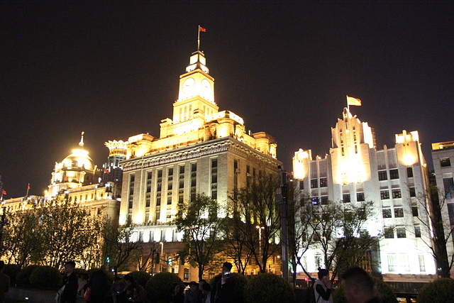 ↑ 外灘是一段沿著黃浦江的馬路和沿路的建築和設施構成,為上海重要的地標之一