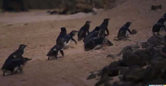 成群結隊搖搖擺擺排隊走回巢穴進行築巢、孵蛋、育幼等活動。