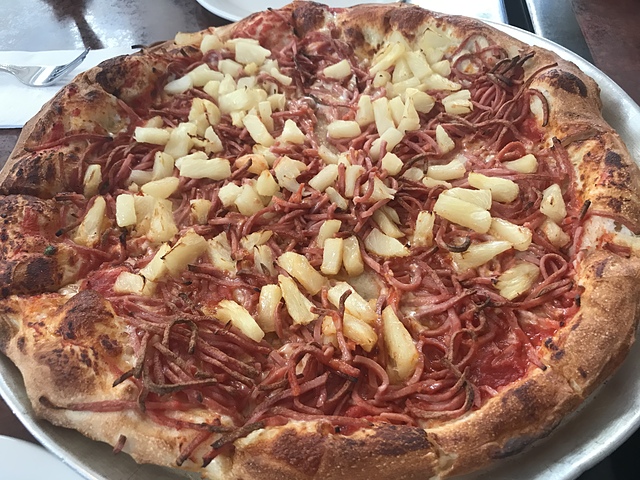 ↑ 夏威夷披薩是以鳳梨、起司、番茄醬以及培根或火腿為配料的一種披薩,當年發明的廚師所用的鳳梨罐頭牌子叫夏威夷,所以……。